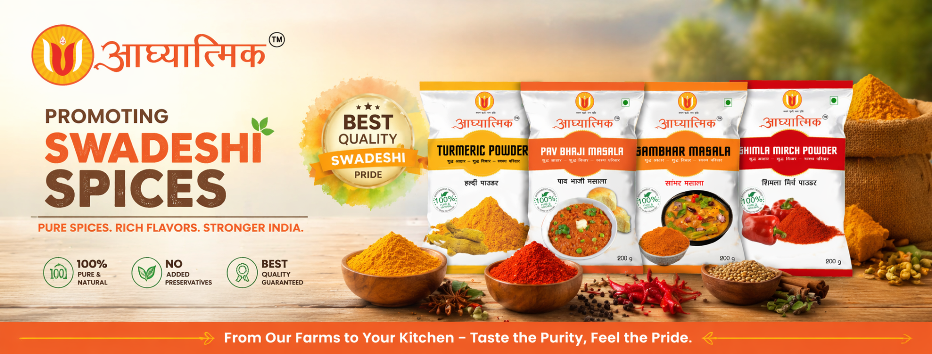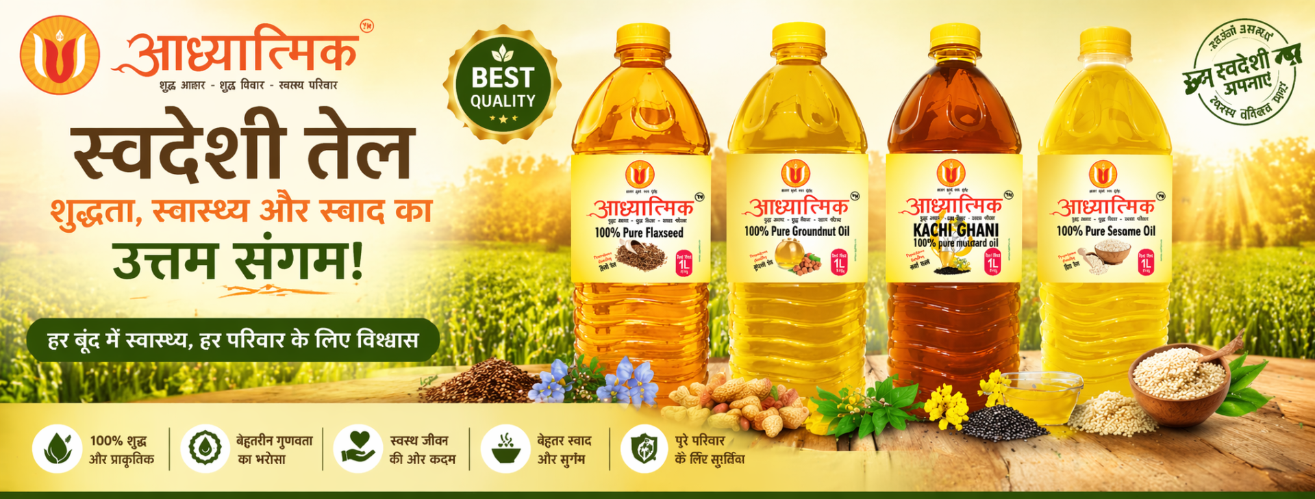Aadhayatmik is the purest oil manufacturer and spices Manufacturer in this world which is committed to deliver only pure and healthy products to this world so that our brothers and sisters will lead their life healthy, happy and prosperous.